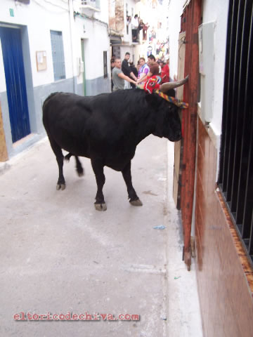El Torico de Chiva en Gestalgar/El "Torico" reposando en una puerta (2 de febrero de 2008)