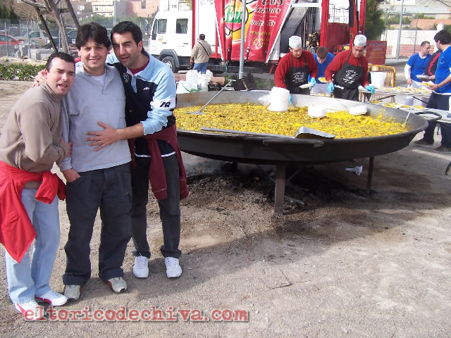 El Torico de Chiva en Gestalgar/Tres componentes del "Capaso" poniendose "tonticos" con la paella (2 de febrero de 2008)